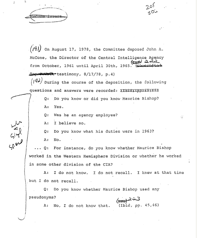 xxxii. HSCA, Seg. CIA file, Staff Notes, No Title, Insert for McCone, March 15, 1978